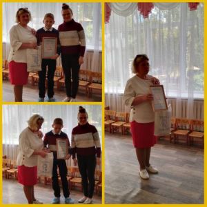 Председатель ППО вручила Диплом победителя конкурса "Из одного металл льют медаль за бой, медалл за труд" Кораблеву Илье и подарок.