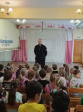 В ДОУ прошла встреча с инспектором ГАИ капитаном полиции Медведевым Д.В. Он провел профилактическую беседу о Правилах дорожного движения. Инспектор рассказал детям о том, как важно всегда соблюдать Правила дорожного движения, идя в детский сад, гуляя по улице или катаясь на велосипеде, подчеркнув при этом, что в тёмное время суток необходимо надевать одежду со светоотражающими элементами. Дмитрий Валерьевич напомнил ребятам, какие нарушения правил детьми-пешеходами чаще всего приводят к ДТП. Это переход через дорогу вне пешеходного перехода, выход из-за стоящих или движущихся транспортных средств, игнорирование сигналов светофора, катание с горок вблизи проезжей части и ходьба по ней. Инспектор дал множество рекомендаций, привел случаи из жизни. Вместе с инспектором дети вспомнили основные правила для пешеходов, правила поведения в автомобиле и общественном транспорте, закрепили знания о дорожных знаках и их назначениях. Вспомнили, для чего нужен светофор, какие бывают светофоры, какие сигналы светофор подает для пешехода, познакомились с сигналами регулировщика. На протяжении встречи дети с большим вниманием слушали инспектора и задавали интересующие их вопросы. Любознательные воспитанники с удовольствием отвечали на вопросы. В конце встречи  пожелал детям быть осторожными, внимательными и беречь себя на дороге.  |